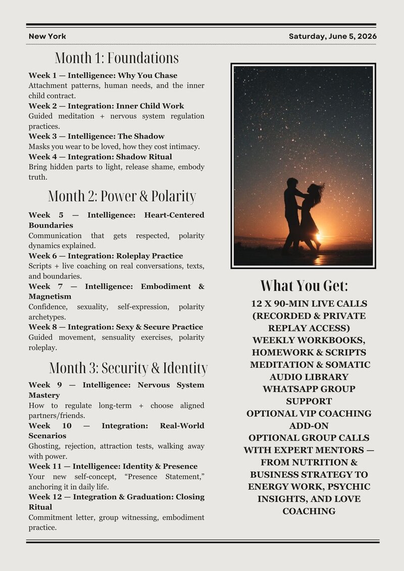 And now I teach you boundaries, dating tools, and communication techniques that follow flowing formulas to integrate, not just scripts.
